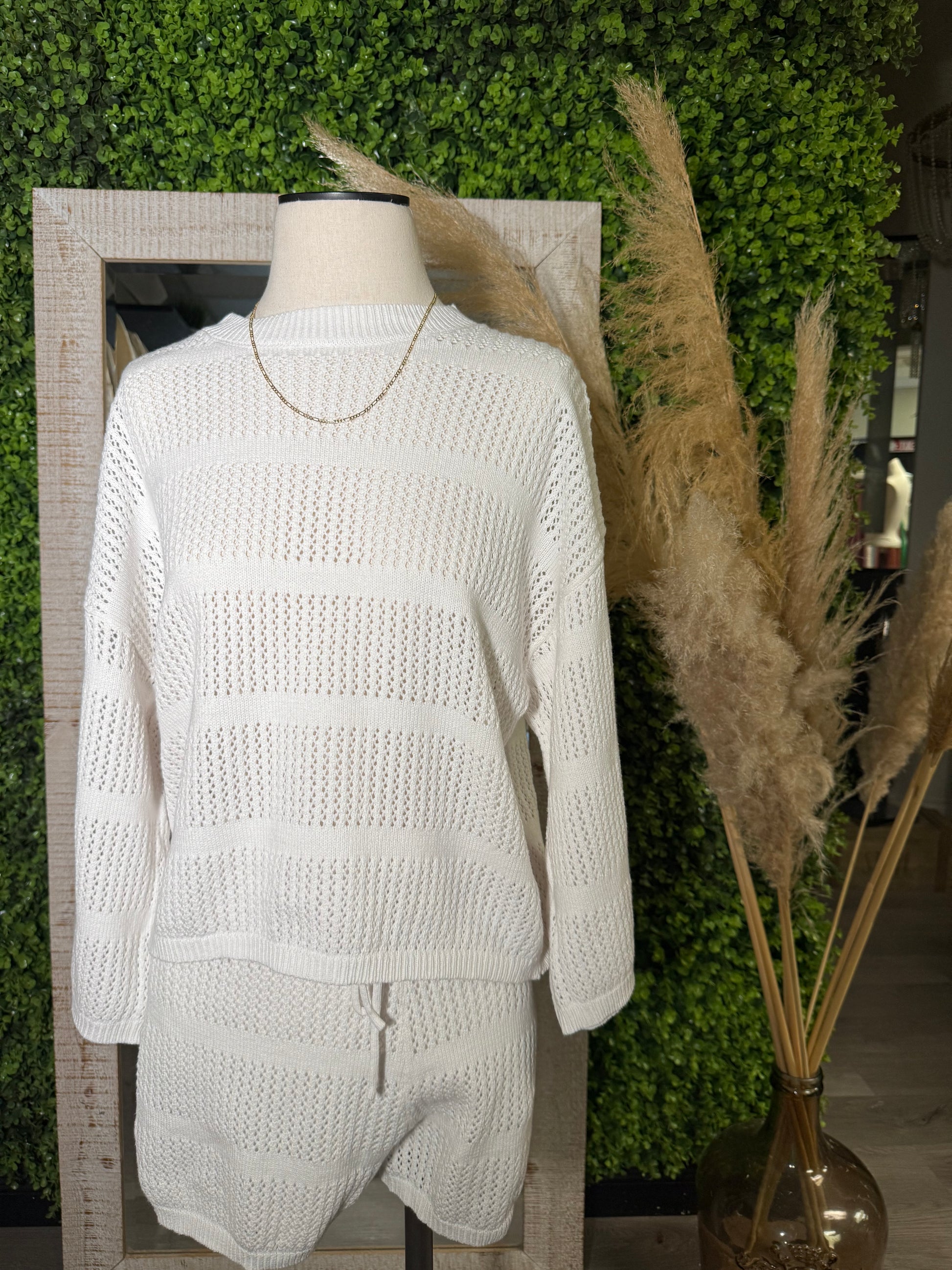 Sheer knit sweater soft and breathable with a delicate see-through finish perfect for layering over a bralette, tank, or swimwear.